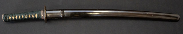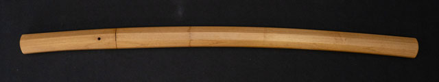 刀長 53.6cm(1尺7寸7分) 反り 1.3cm(4分3厘) 元幅 2.93cm 先幅2.34cm 元重 6.3mm 先重 4.8mm 刀身重量 540g 鞘を払って800g