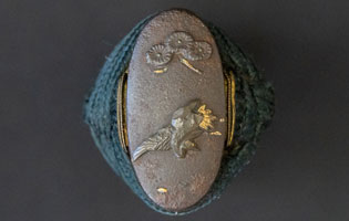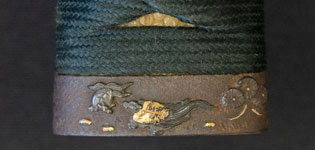地金は下原のお家芸の如輪杢で美しい刃紋小沸出来所々葉飛ぶ。