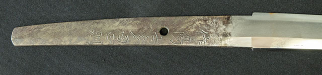 刀長 52.6cm(1尺7寸3分) 反り 1.1cm(3分6厘) 元幅 2.53cm 先幅 1.94cm 元重 6.7mm 先重 5.1mm  刀身重量 裸身 440g  鞘を払って 700g  生  目釘穴   刃文 直刃 価格