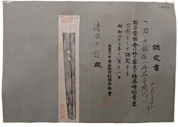 刃紋直刃小沸出来物打沸厚く付きいもずる沸島働く。地金小板目肌流れごころ。