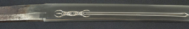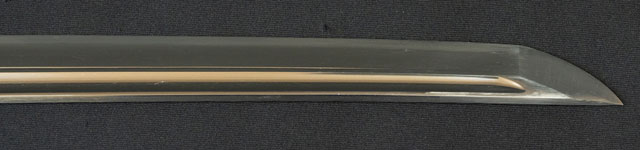 刀長 67.9cm(2尺2寸1分) 反り 1.0cm(3分3厘) 元幅 2.85cm 先幅 2.15cm 元重 5.7mm 先重 4.6mm 刀身重量 裸身540g