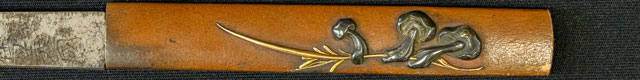 小柄は素銅茸の図銘一寿軒英明。