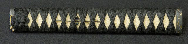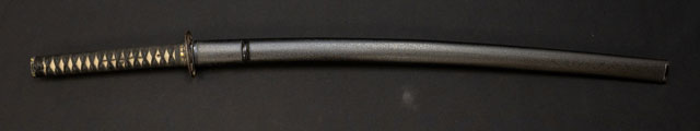 | 刀長 70.0cm(2尺3寸1分) 反り 1.2cm(4分) 元幅 3.3cm 先幅 2.56cm 元重 6.9mm 先重 5.5mm 刀身重量 裸身 810g 鞘を払って 1,100g 茎 生 目釘穴 1 刃文 互ノ目 |