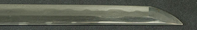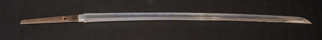刀長 70.2cm(2尺3寸2分) 反り 0.9cm(3分-厘) 元幅 3.16cm 先幅 2.41cm 元重 7.1mm 先重 4.6mm 刀身重量裸身740g 鞘を払って-g 生 目釘穴 1  刃文 乱刃 価格
